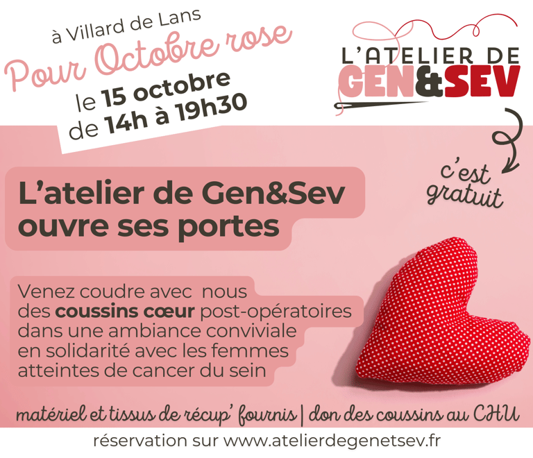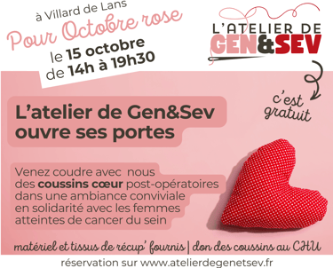 Les coussins cœur sont réalisés selon le patron et les recommandations de la Ligue contre le cancer.
